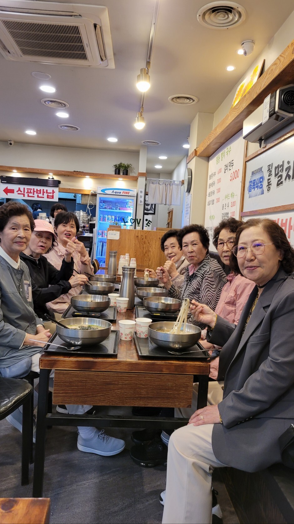 그런데 끝나고 나니 오후 5시30분 개인일정등으로 먼저가신 분들이 있고 8명이 남아계셔 차를 마시러 가자고 여쭈니 차 값이면 국수라도 먹는게 어떠냐는 의견을 주신분이 계셨습니다. 회원님들은 기다렸다는듯이 '말해 뭐해' 라며 반기시더라구요~, 마침 바로 옆에 유명한 국수집이 있고 퇴근 전이라 한가하여 잔치국수를 시켰는데 시장하셨는지 나무 맛있게 잘 드셨습니다.
