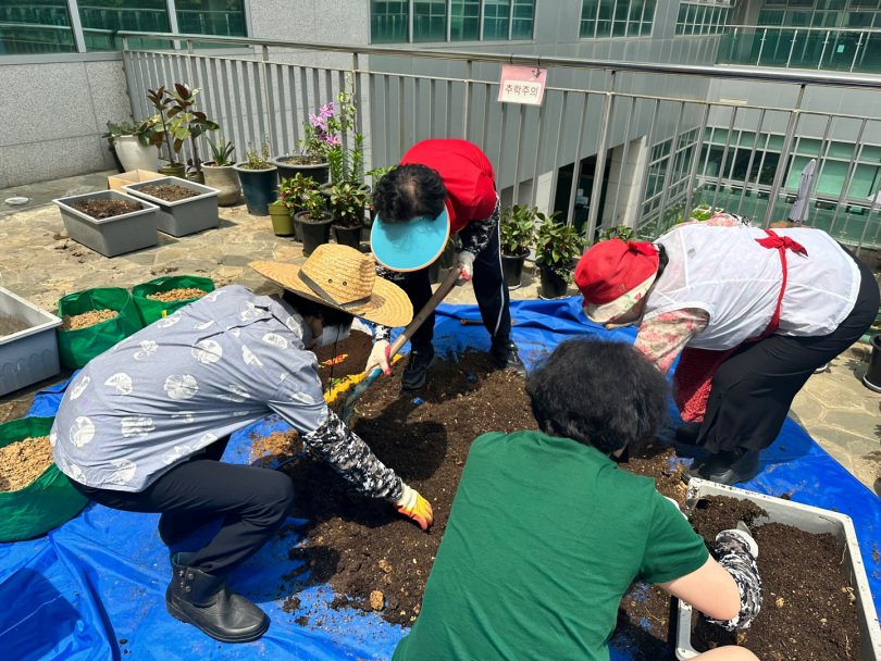 5.12 화창한 금요일 오후 송파복지센터 공감터에 수세미가 심어졌습니다.