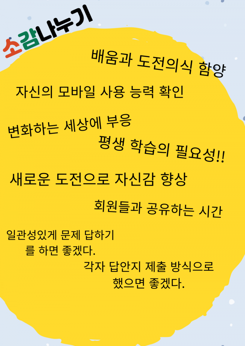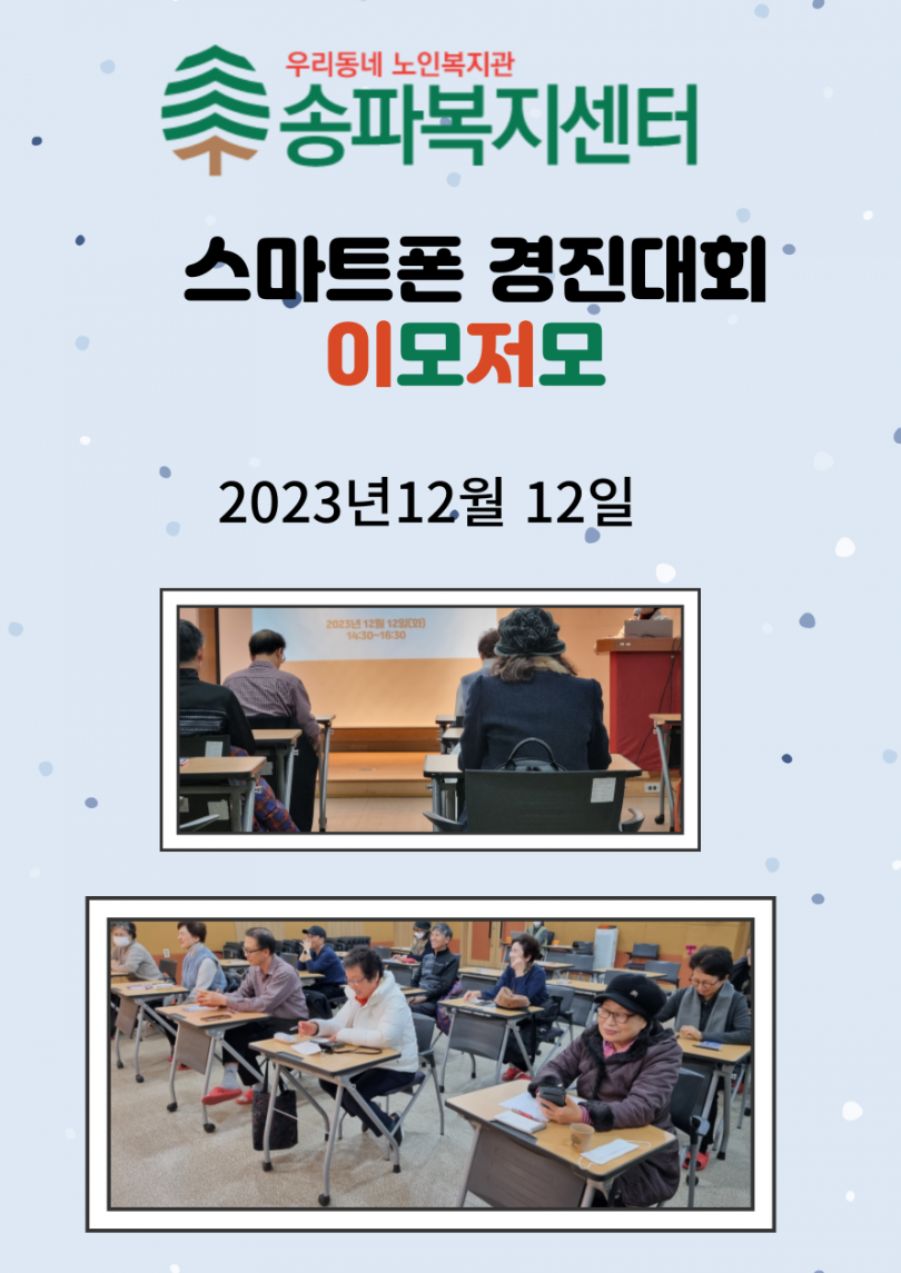 앞으로 송파복지센터 회원님들은 모두 스마트 시니어가 되기를 기원합니다.