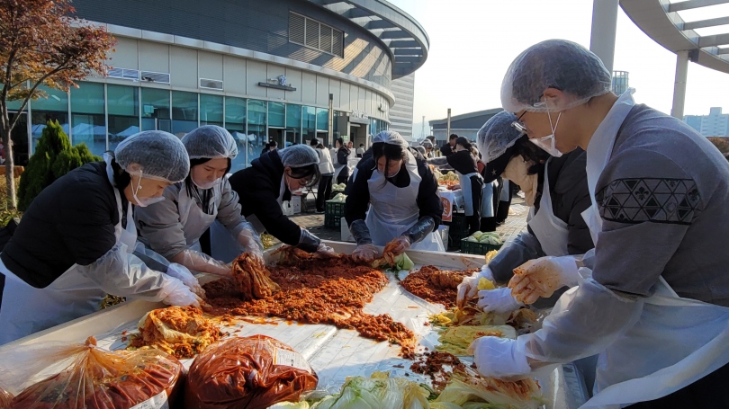 다 함께 모여 김장을 담그고