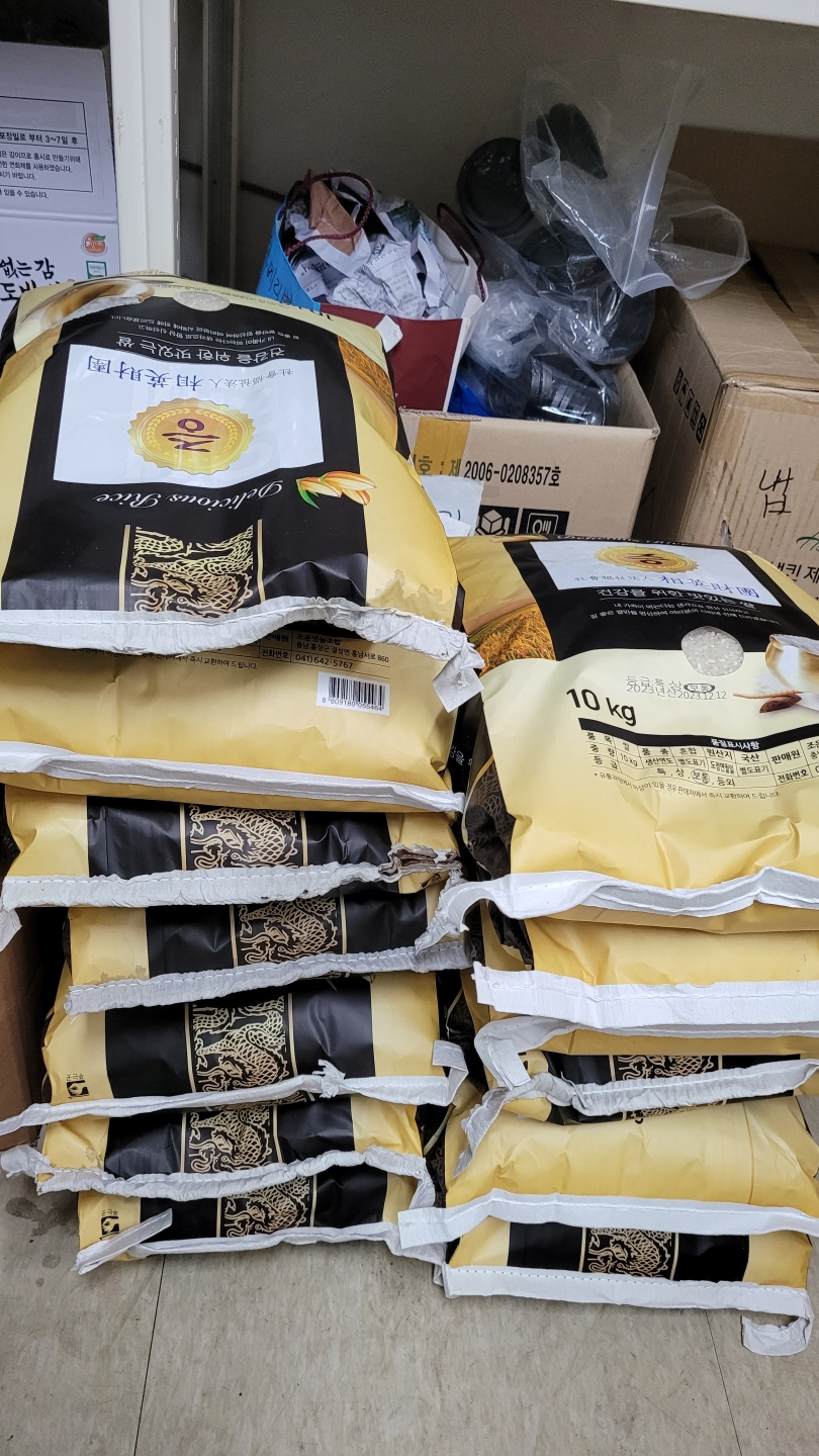 백미 13포 후원으로 13가정에 나누어 드리고
