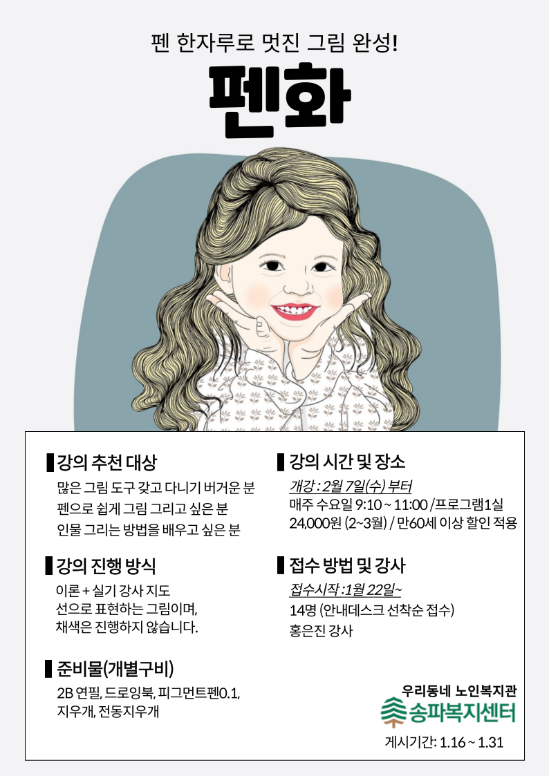 접수방법 : 1. 22.(월) 안내데스크 선착순 접수