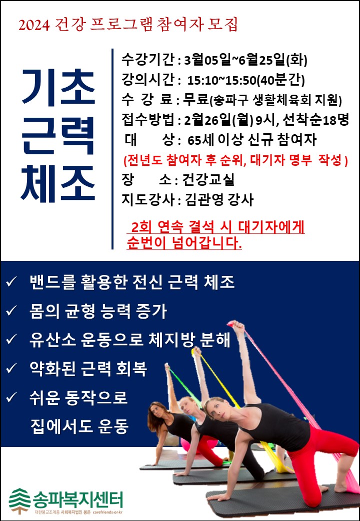 | 노인운동지도자 양성과정 '시니어바디디자이너' 참여자 모집 (0) | 2024.03.12 |