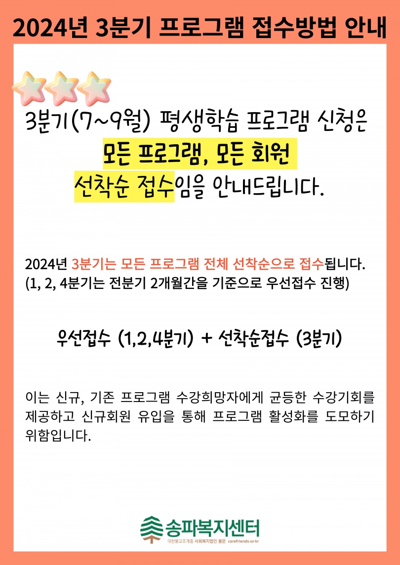 | 2024년 2분기 프로그램 접수 방법 안내 (1) | 2024.03.04 |
