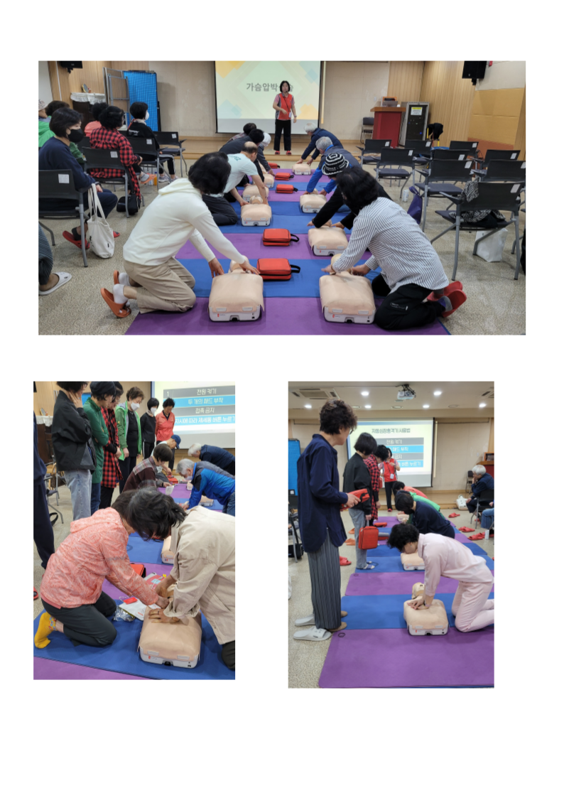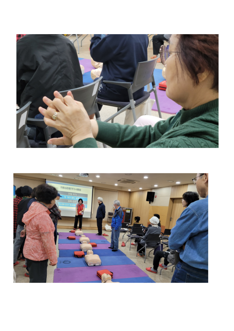 심폐소생술과 자동심장충격기 실습을 하였습니다.