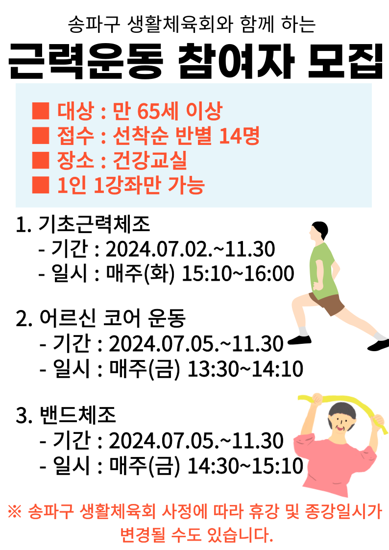 송파구 생활체육회에서 송파복지센터 회원님들의 건강한 일상을 지원하고자