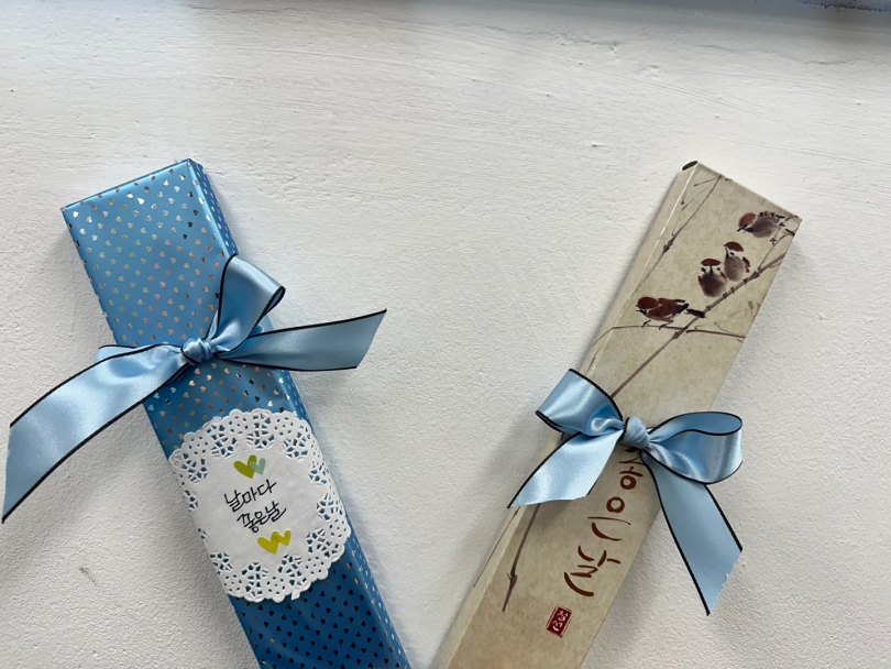 직접 만든 부채를 들고와서 더운 여름을 시원하게 보낼 수 있도록 전달 해주었었답니다.