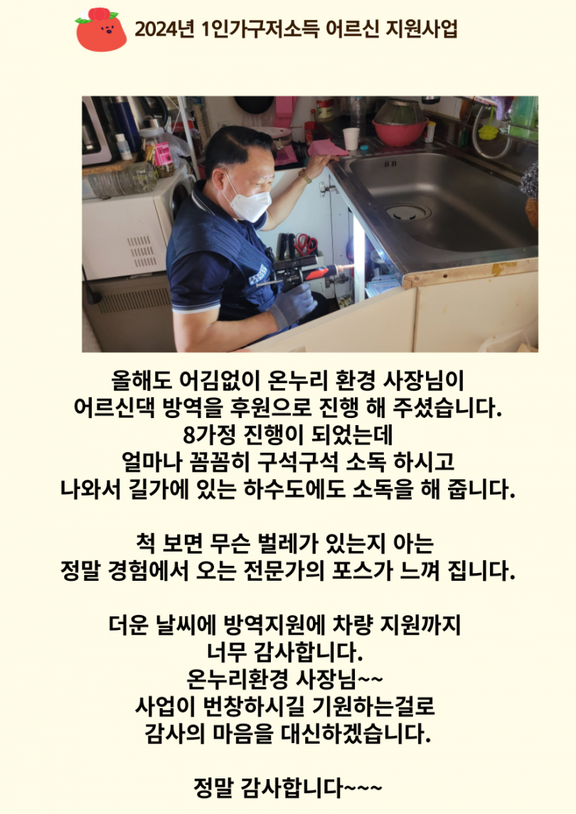 온누리환경 양승철 사장님 8가정 방역을 후원해 주셨습니다.