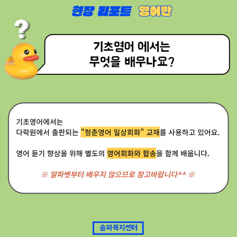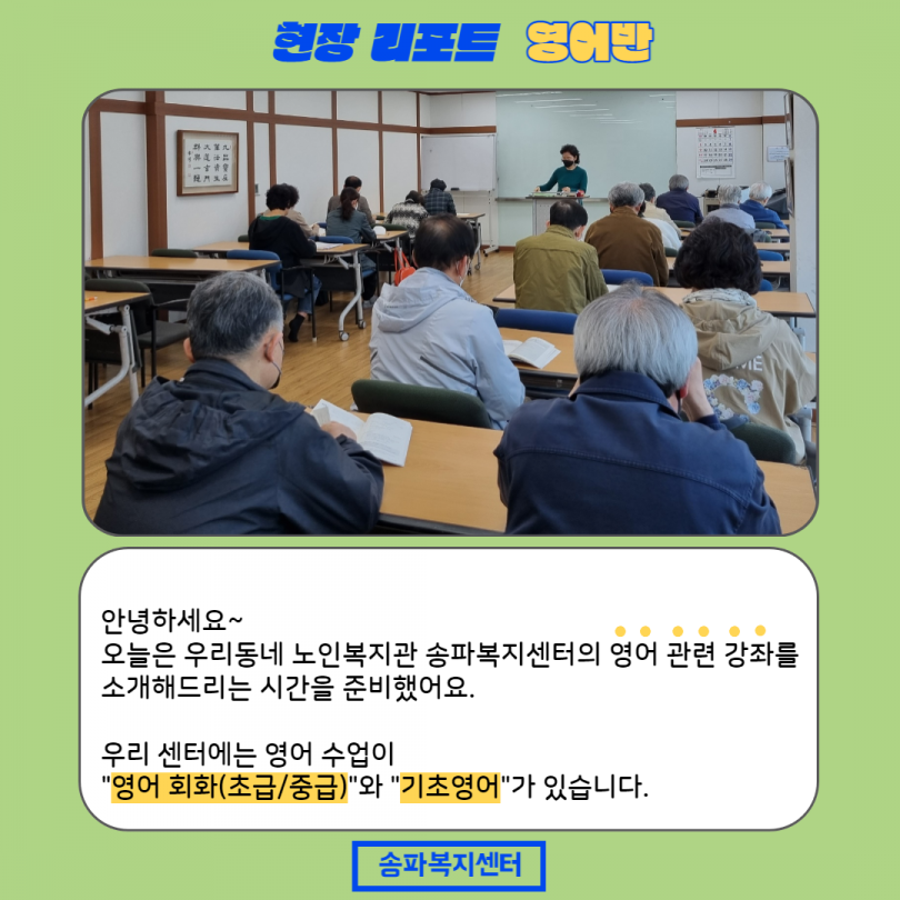 어학 중에 영어는 '영어회화(초급)' '영어회화(중급)' '기초영어' 이렇게 3가지 강좌가 있습니다.