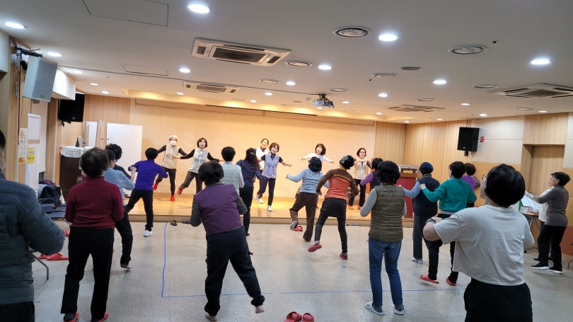 안전한 행진을 위해 행사 전 체조를 함께 하고자 시니어 바디디자이너분들이 운동지도도 함께 진행했습니다.