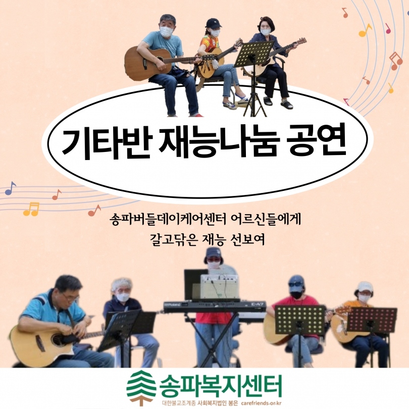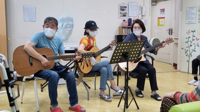 우리 송파복지센터 기타반 수강생들이 송파버들데이케어센터 어르신들과