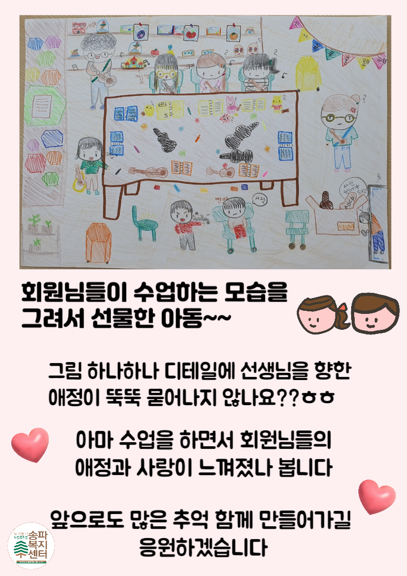 수업 받는 아동이 수업 모습을 그려서 보내주었는데요~~