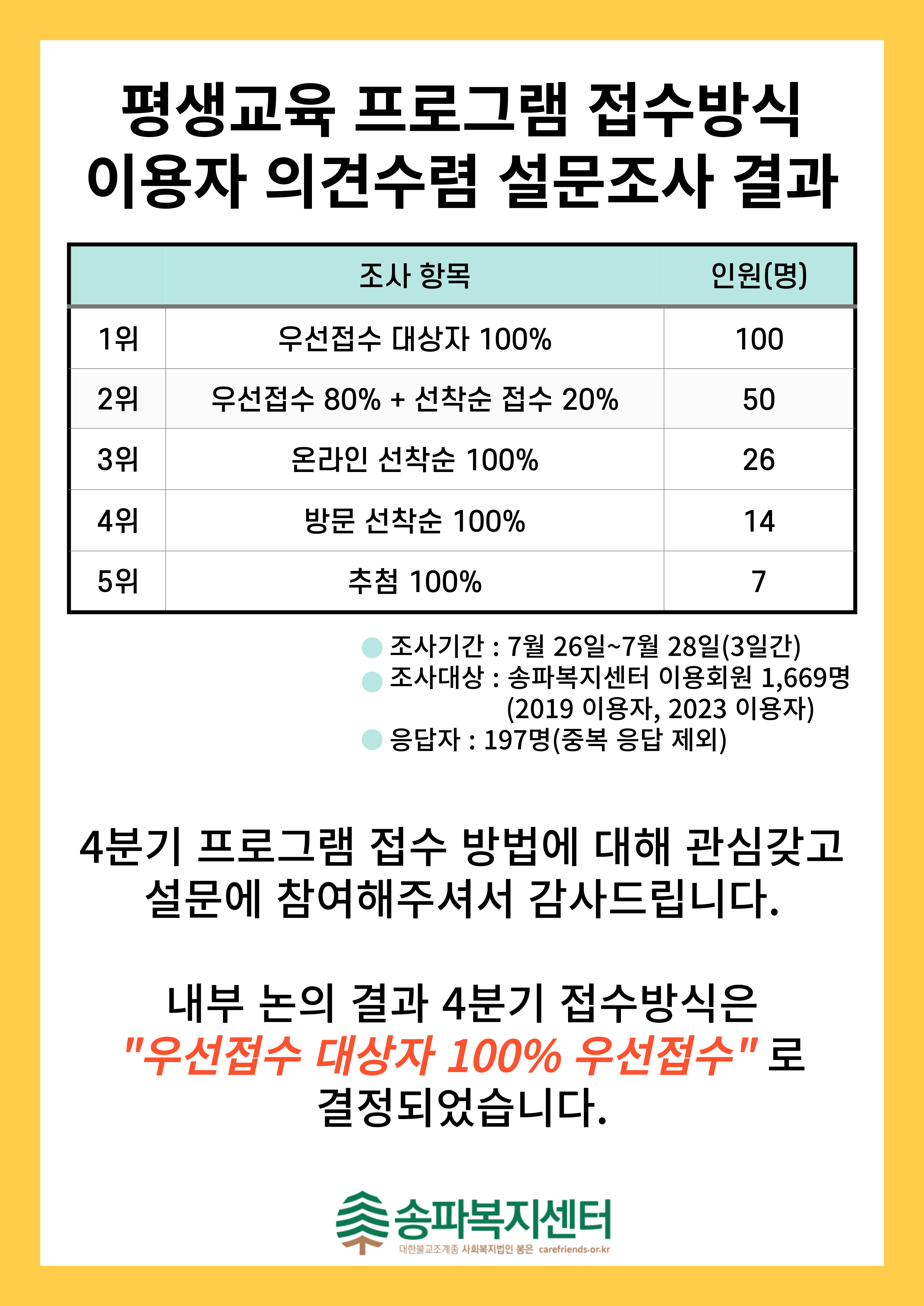 | ★ 평생학습 접수방법 설문조사에 참여해주세요! ★ (0) | 2023.07.26 |