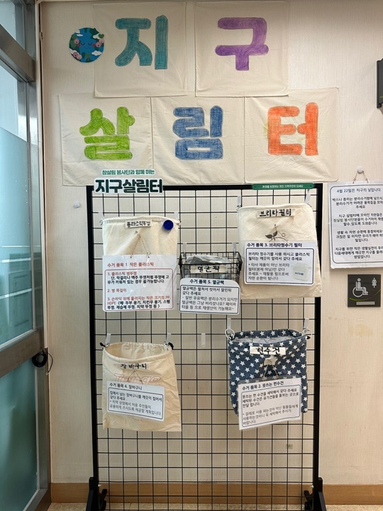 지구살림터는 자원순환 회수 스테이션으로 복지센터 이용주민 누구나 손쉽게 재활용품 회수에 참여하고 저탄소 생활 실천정보를 얻는 공간입니다.