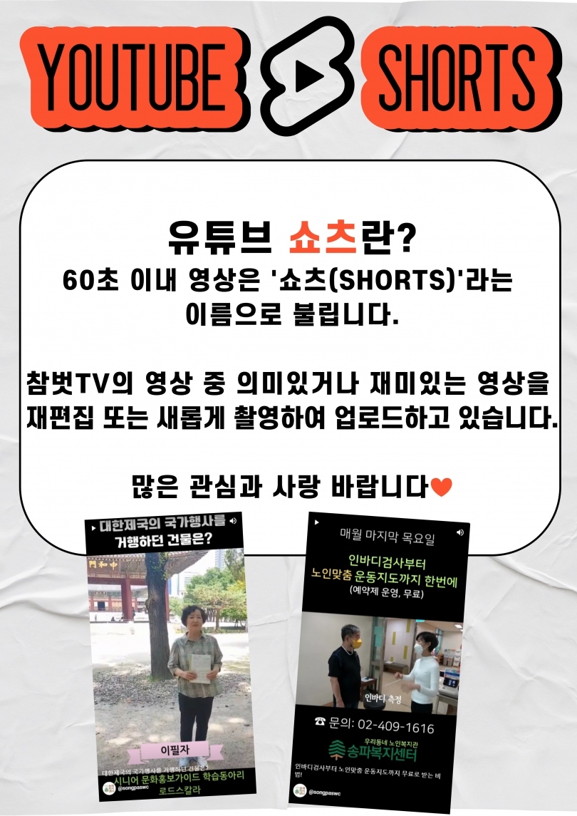 '송파복지센터 이야기 > 유투브 참벗TV, SNS' 카테고리의 다른 글