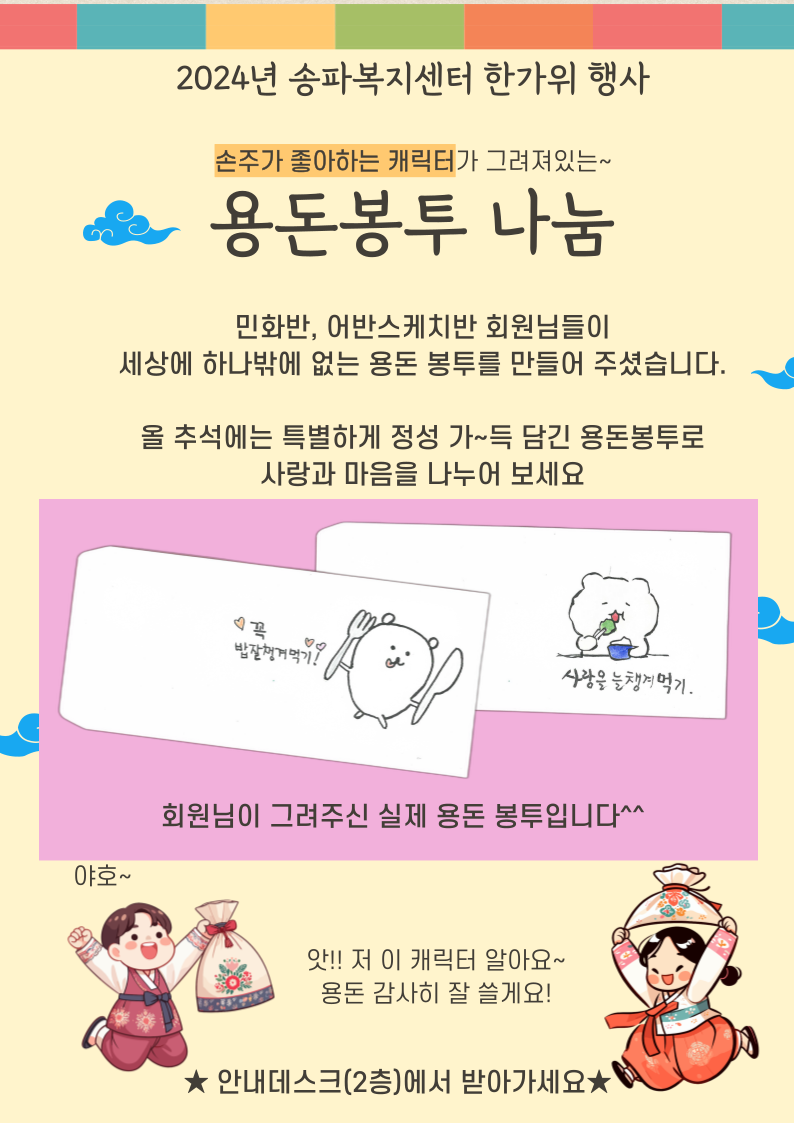 올해에는 은행에서 나눠주는 봉투 말고, 손주가 좋아할만한 캐릭터가 그려져 있는 봉투를 사용해보세요!